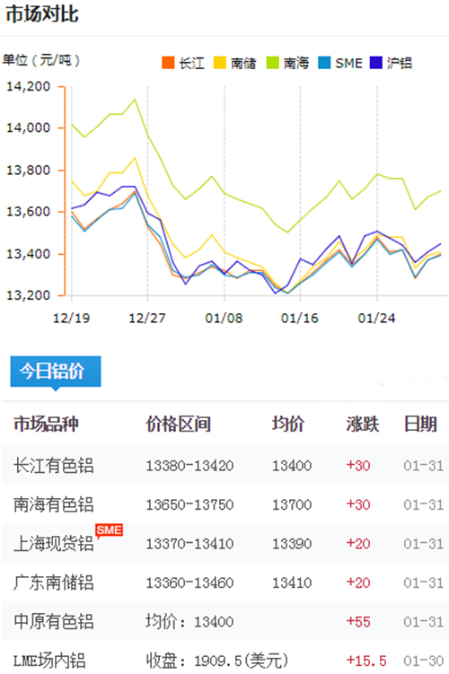 鋁錠價(jià)格今日鋁價(jià)2019-01-31