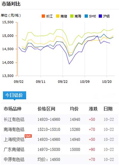 鋁錠價格今日鋁價2020-10-21