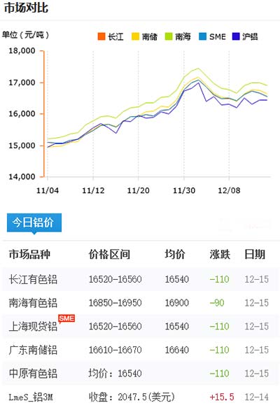 鋁錠價(jià)格今日鋁價(jià)2020-12-15
