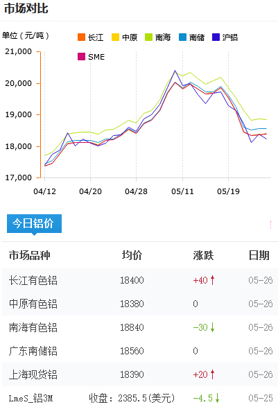 鋁錠價格今日鋁價2021-05-26