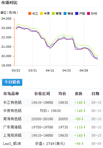 鋁錠價(jià)格今日鋁價(jià)2022-05-10