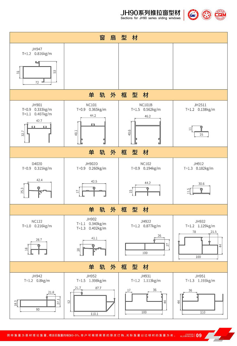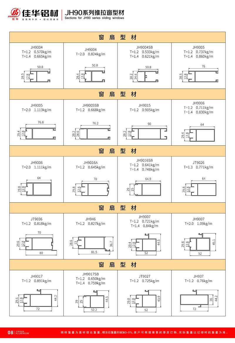 鋁型材規(guī)格型號:JH90 二