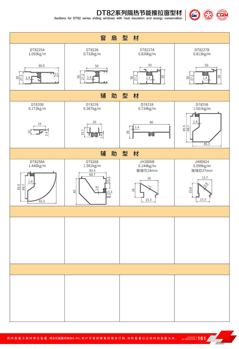 鋁型材規(guī)格型號(hào):DT82推拉系列