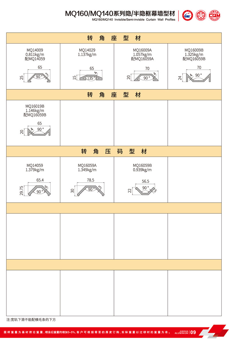 鋁型材規格型號:MQ160/MQ140 A
