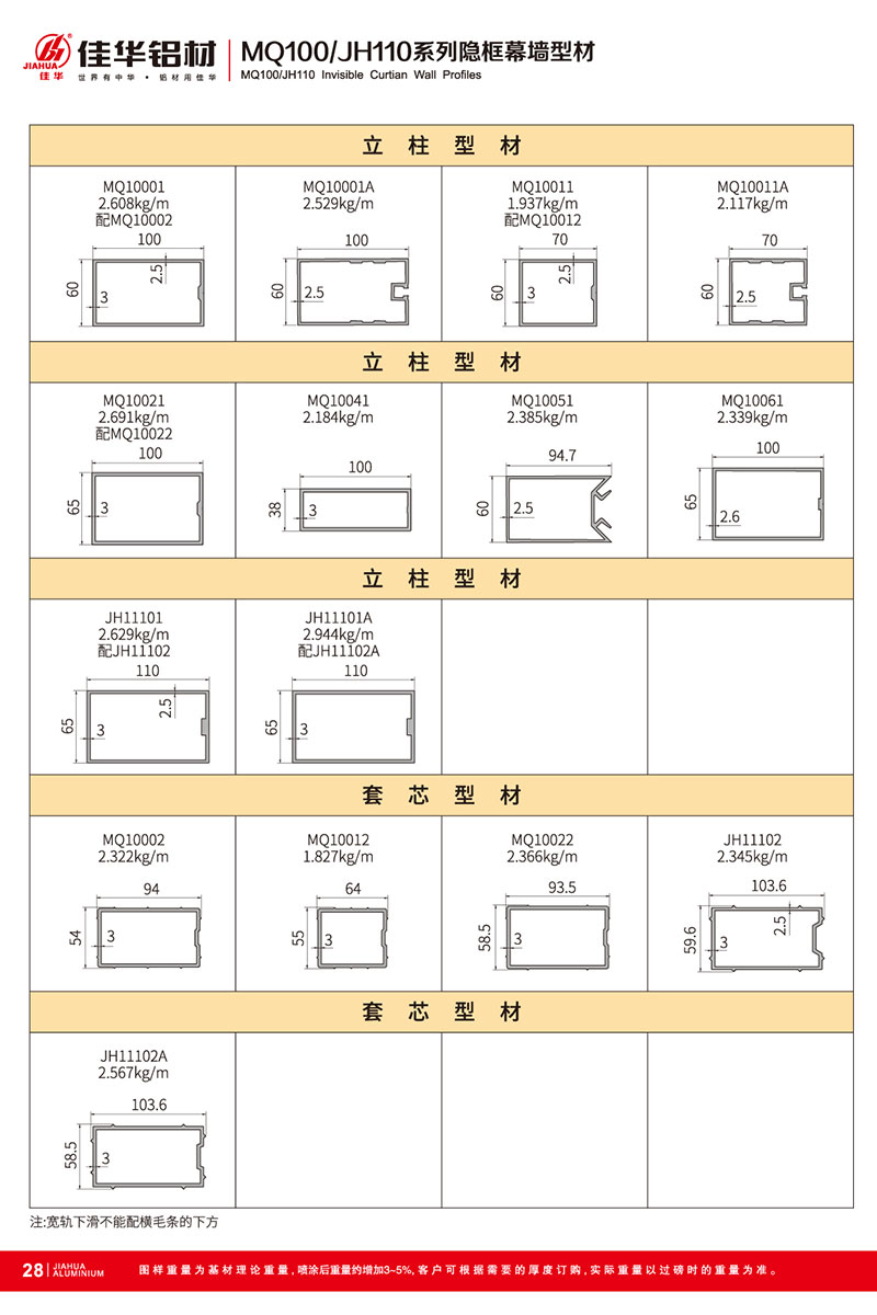 鋁型材規(guī)格型號(hào):MQ100/JH110 A