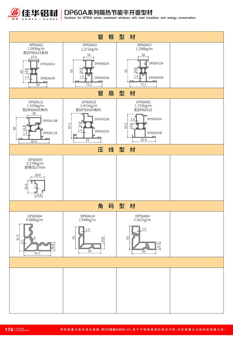 鋁型材規(guī)格型號(hào):DP60A平開系列