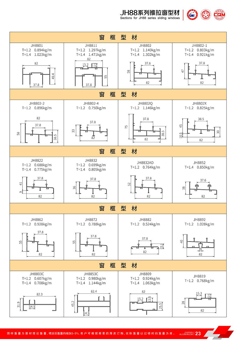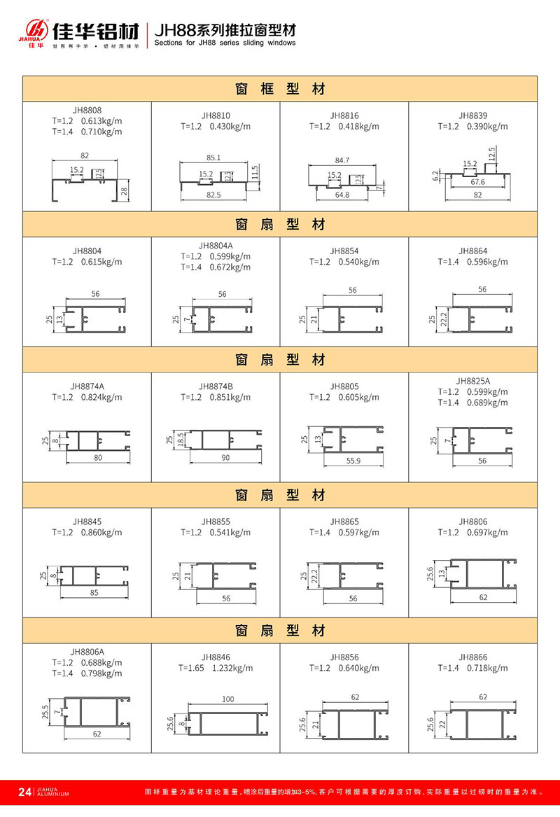 鋁型材規(guī)格型號:JH88