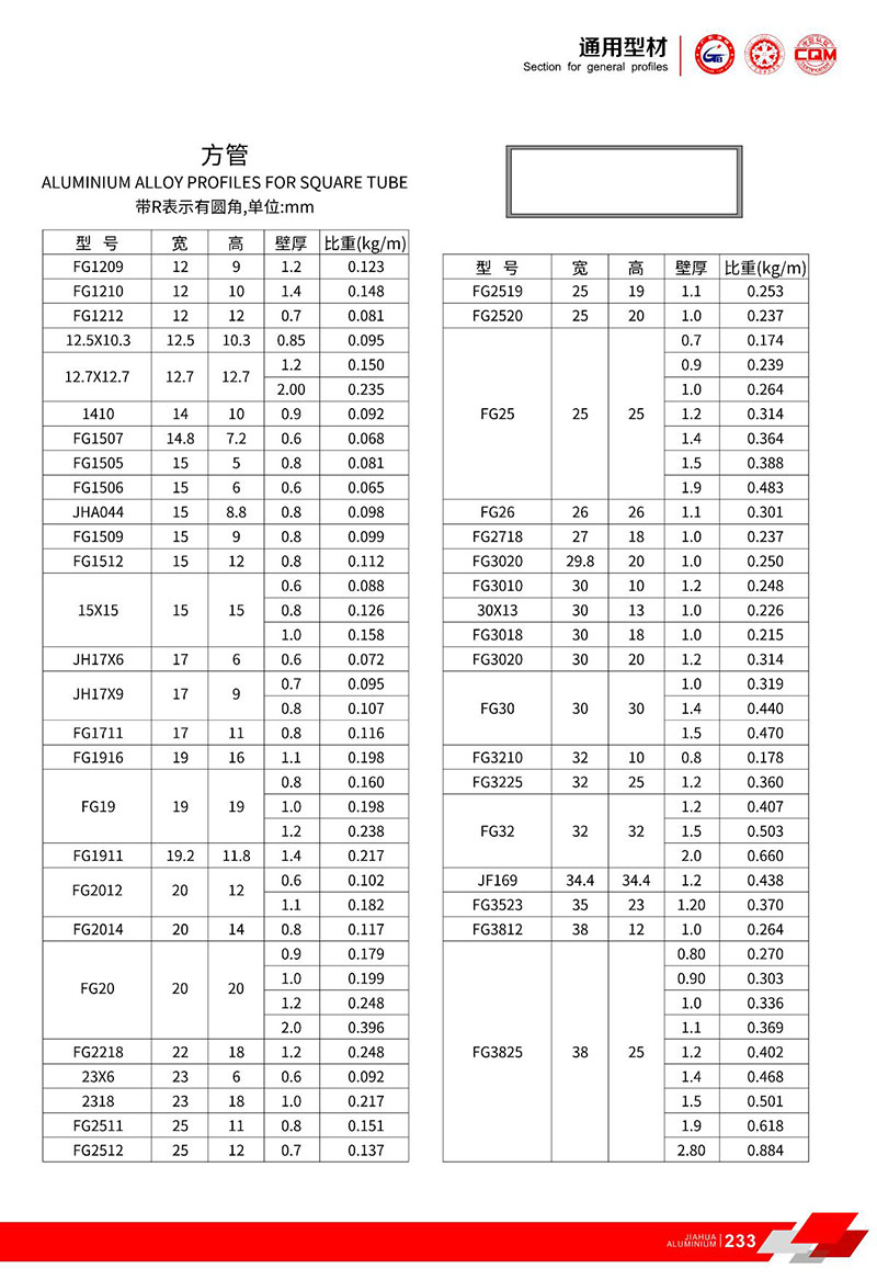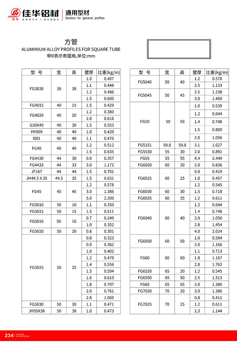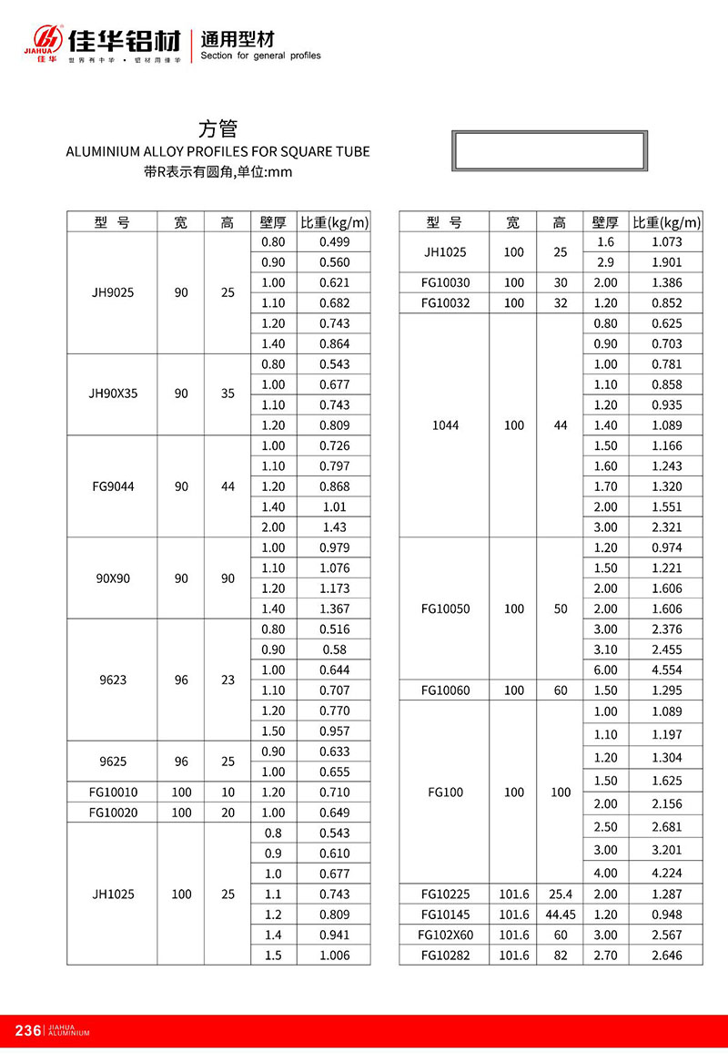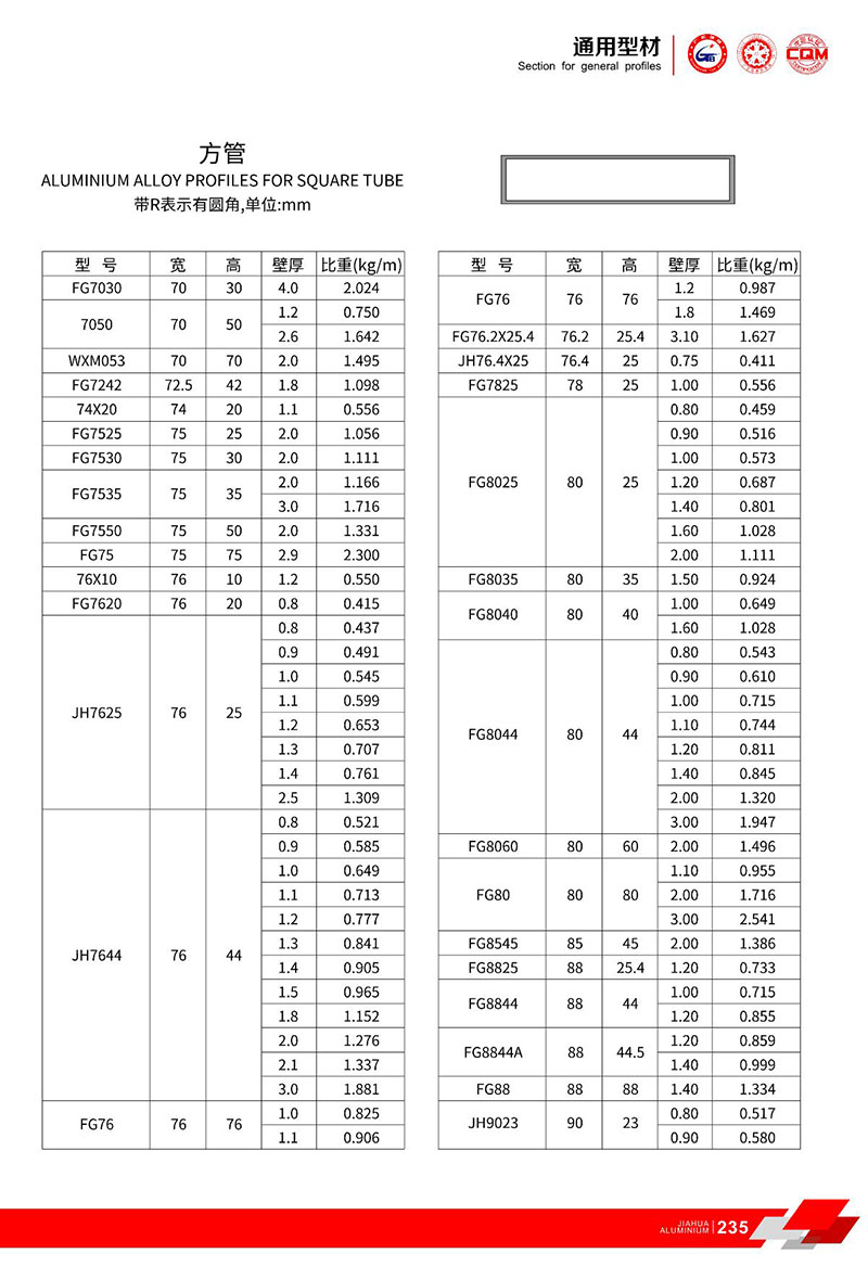 鋁型材規(guī)格型號(hào):方管型材