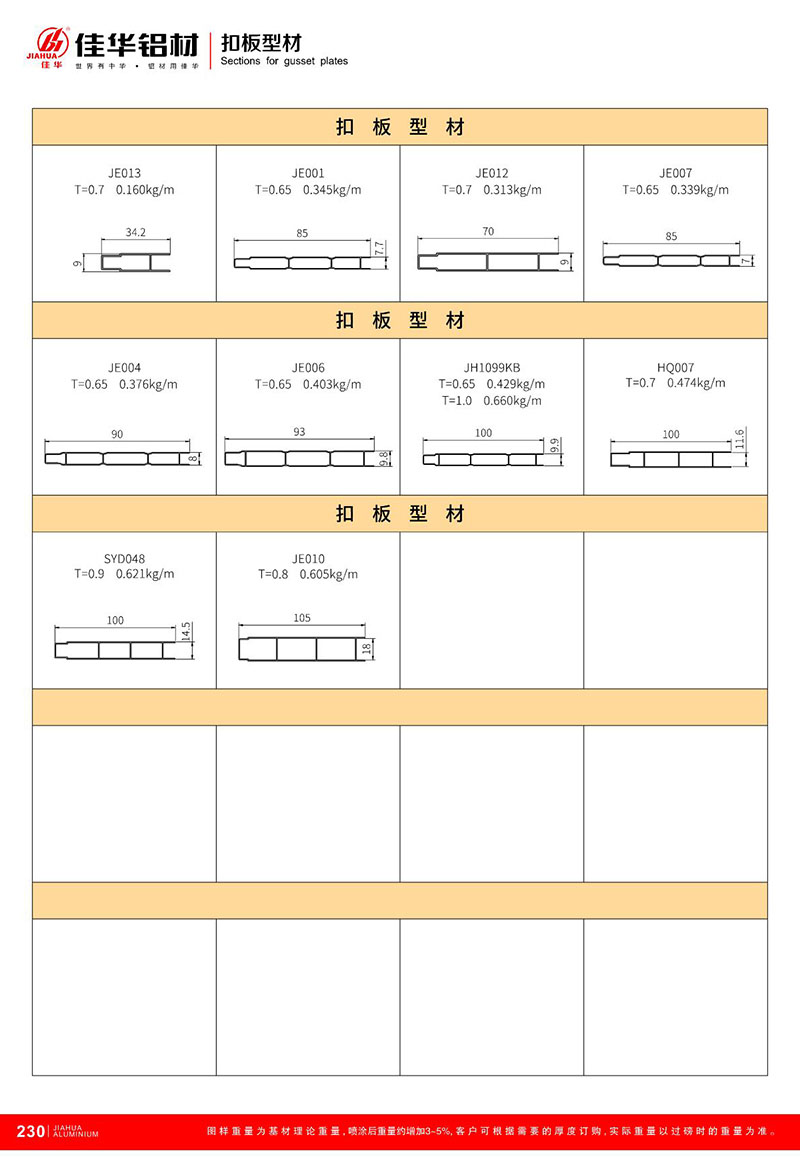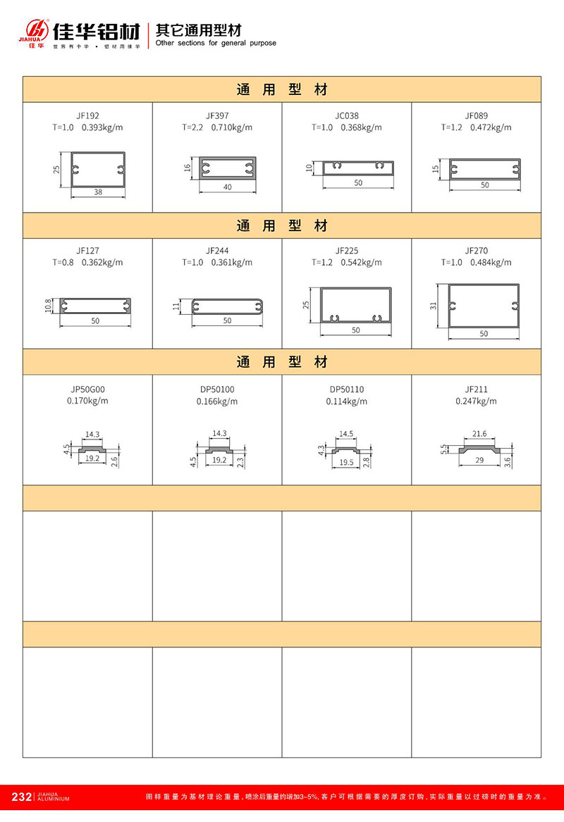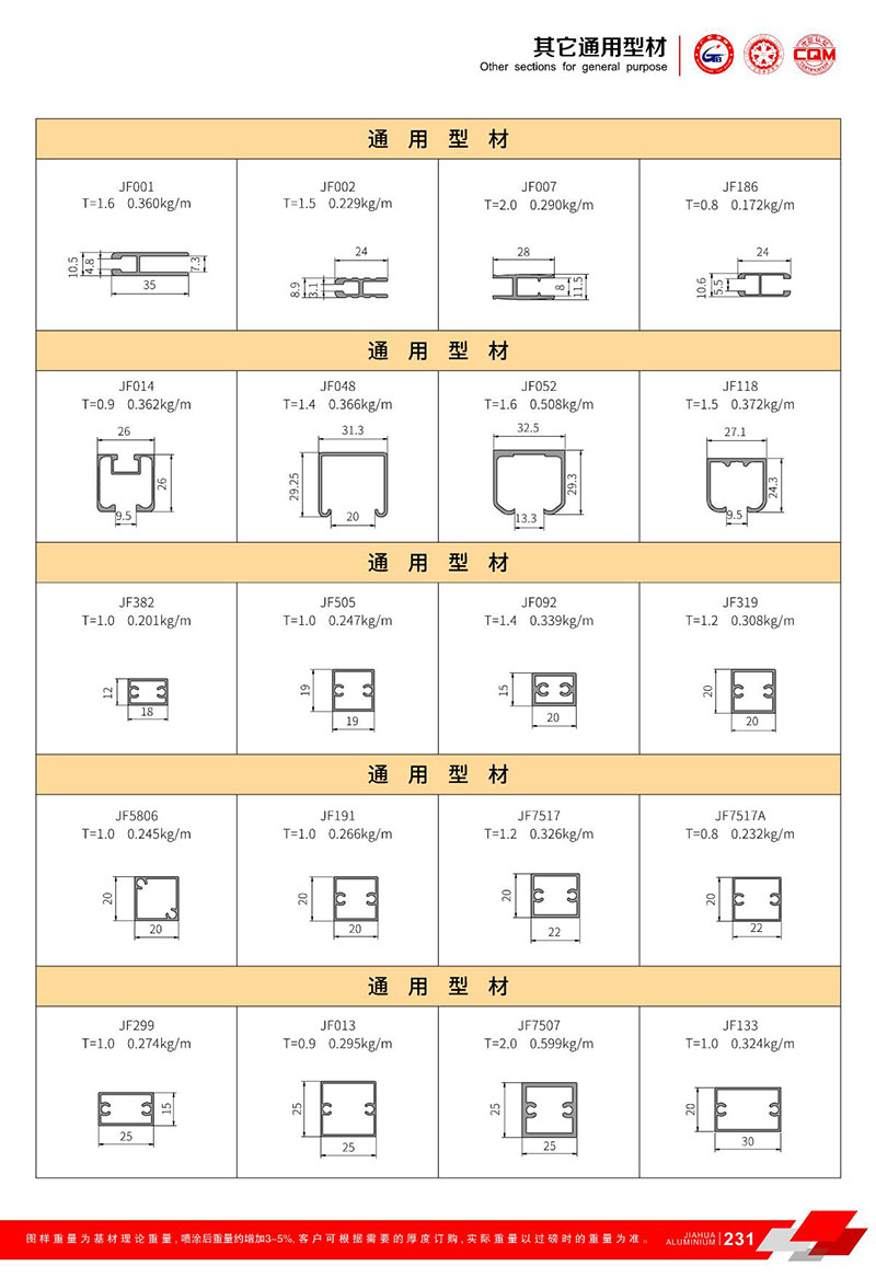 鋁型材規(guī)格型號:其他通用型材